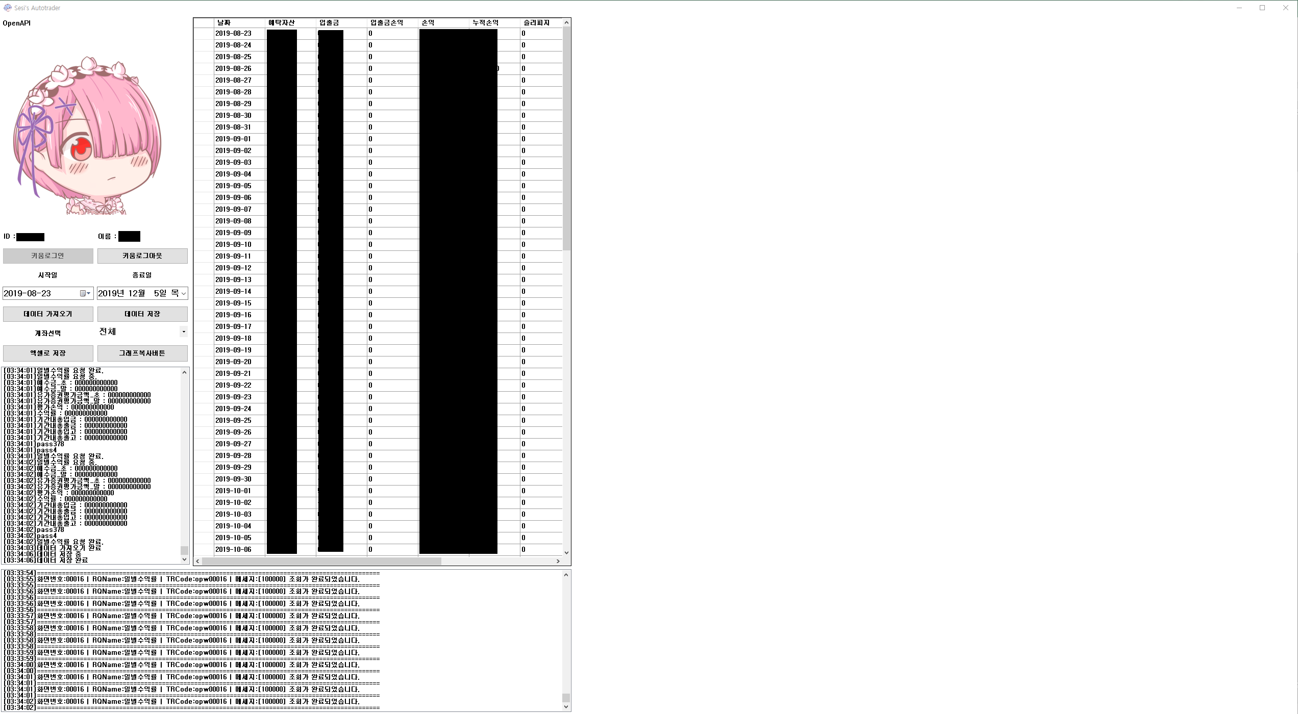 위의 그래프는 예탁자산그래프인데 파란색이 원래 내가하던 방식인 키움 0392 화면에서 가져온 데이터이고