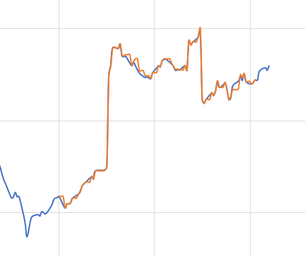 위의 그래프는 예탁자산그래프인데 파란색이 원래 내가하던 방식인 키움 0392 화면에서 가져온 데이터이고