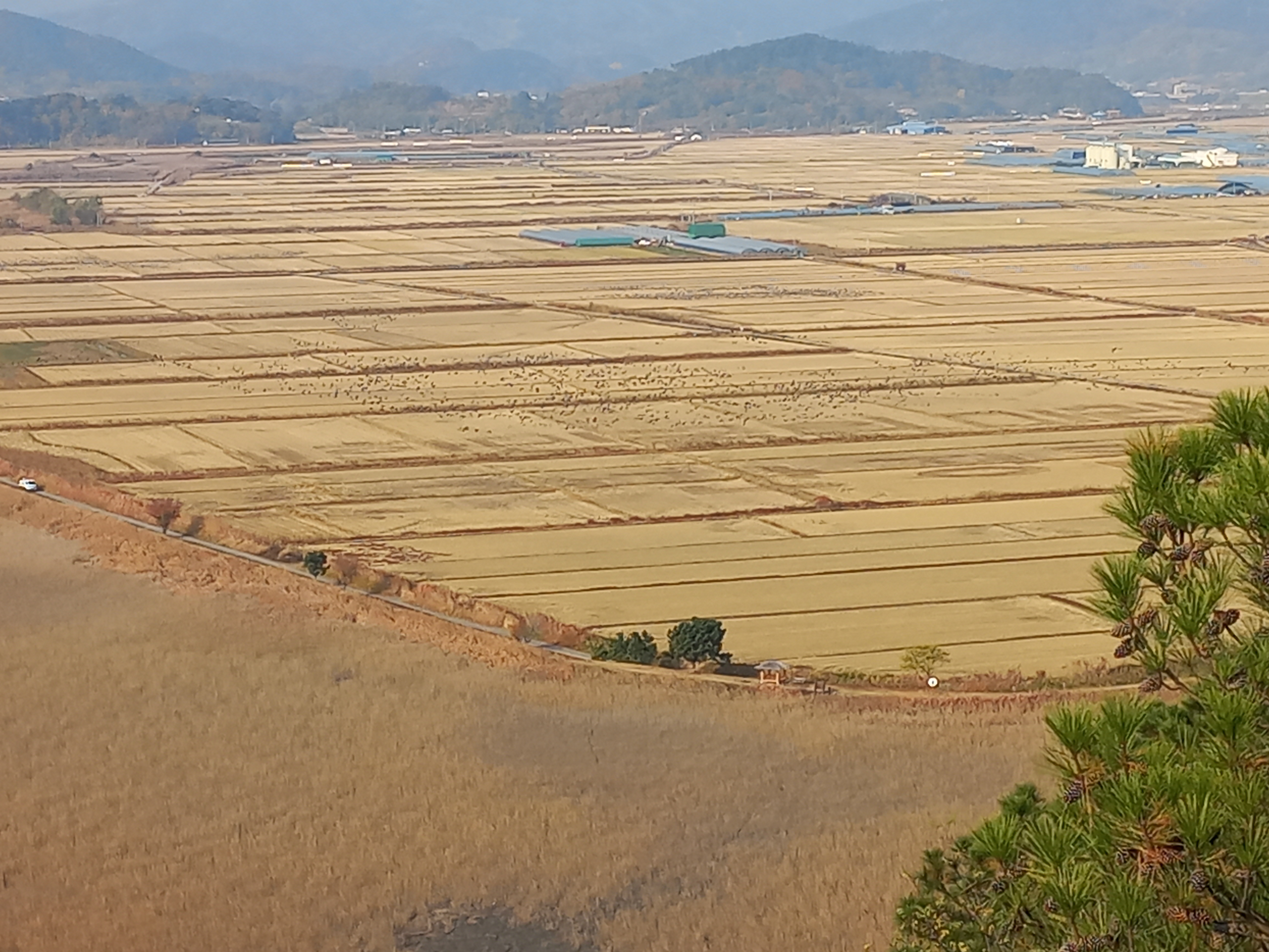 갯벌위에 자세히 보면 하얀색 점들이 박혀있는데 아래층에 있는 망원경으로 보니 새들이었다.